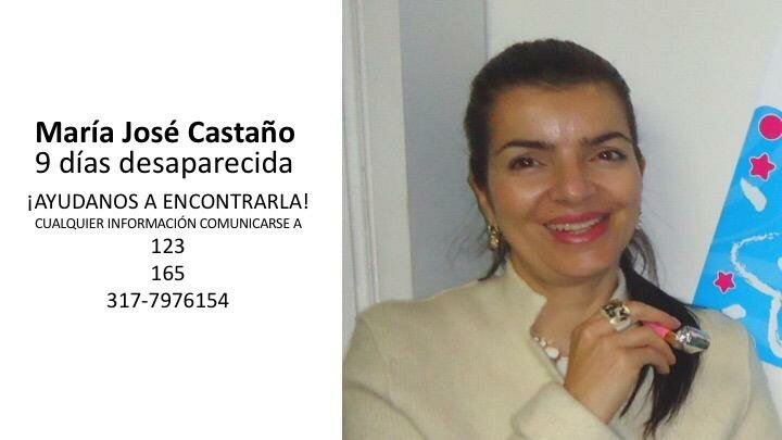 Si tienes información de María José, te puedes contactar con los siguientes números telefónicos: 123 – Policía, 165 – Gaula o al 317 7976154.